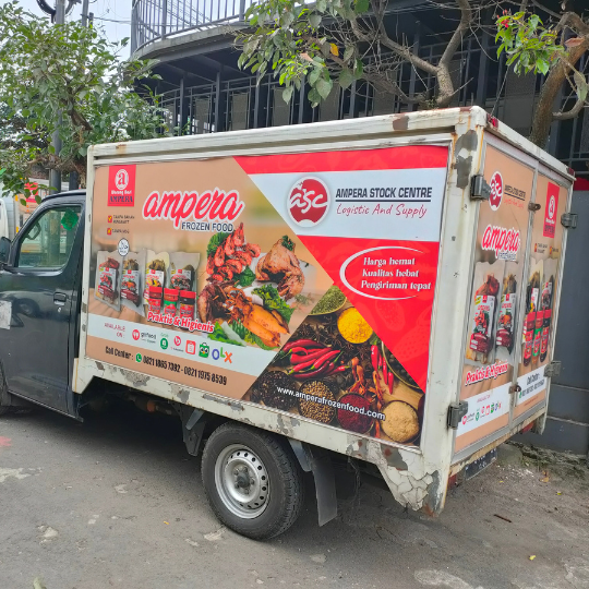 Mulai dari tahap desain, print, hingga pemasangan, semua dikerjakan dengan detail menggunakan bahan sticker premium yang tahan cuaca. Hasilnya mampu menempel sempurna di permukaan mobil dan tetap awet meski sering digunakan di luar ruangan.