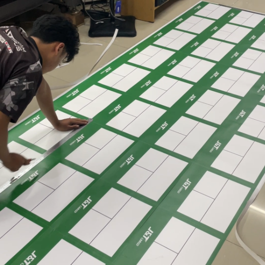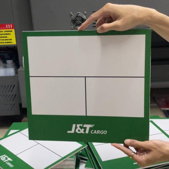 Proyek gateway board custom ini dikerjakan untuk J&T Cargo, dengan tujuan menghadirkan media identitas dan branding yang profesional, estetik, dan mudah dikenali. Dengan desain full color dan material berkualitas, gateway board ini efektif digunakan untuk menandai lokasi atau pintu masuk area operasional perusahaan.