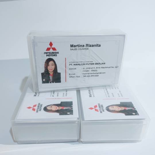 Proyek ID card custom ini dikerjakan untuk Mitsubishi, dengan tujuan menghadirkan media identitas yang profesional, rapi, dan mendukung branding perusahaan. Dicetak full color dengan hasil tajam, ID card ini tidak hanya berfungsi sebagai kartu identitas, tetapi juga memperkuat citra perusahaan.