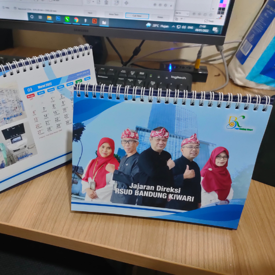 Proyek kalender custom ini dikerjakan untuk RSUD Bandung Kiwari, dengan tujuan menghadirkan media informasi yang fungsional sekaligus mendukung branding instansi. Dengan desain full color dan hasil cetak tajam, kalender ini cocok digunakan di meja kerja, ruang publik, maupun sebagai souvenir resmi.