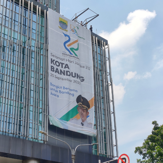 - Banner siap dipasang di lokasi strategis outdoor.