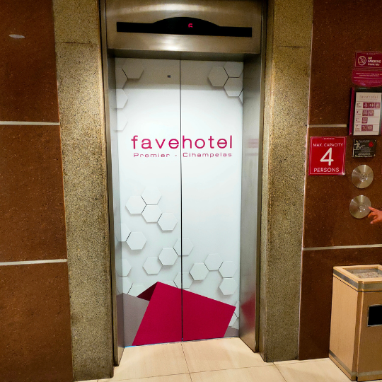 📌 Hasil akhir menghadirkan sticker lift yang estetik, fungsional, dan profesional, memperkuat identitas visual Fave Hotel sekaligus meningkatkan pengalaman tamu di