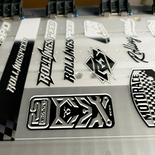 📌 Hasil akhir menghadirkan sticker transparan UV yang estetik, eksklusif, dan fungsional, mendukung branding Rolling Speed agar lebih menonjol dan profesional.
